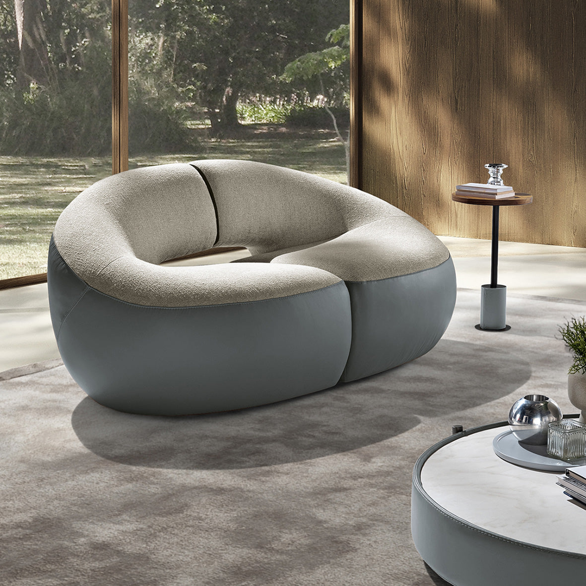 Abbracci, tek başına kullanılabilen ya da orijinal bir iki kişilik kanepe olarak tercih edilebilen bir tasarımdır. Hafifçe yuvarlatılmış sırt dayanağı, nazik bir kucaklama gibi oturma alanını sarar ve size sıcak bir sarılma ile dinlenme anı sunar.