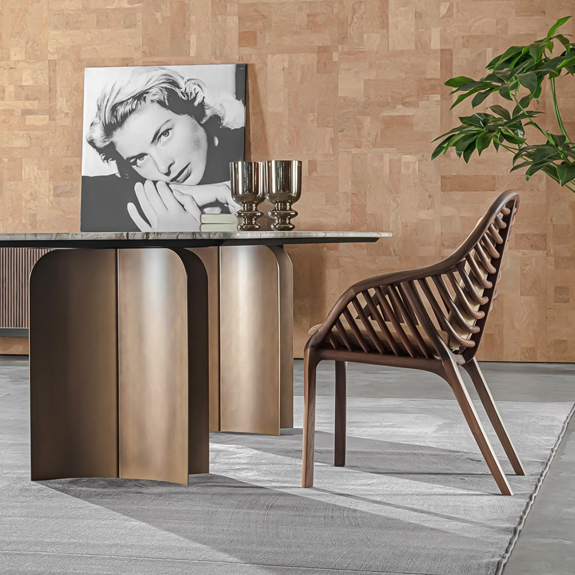 Güçlü bir karaktere sahip, uyumlu ve çağdaş bir tasarım olan Bolgheri, her ortama kusursuz bir şekilde uyum sağlar. Boyalı metalden oluşan ayak yapısı, her bir ayak elemanındaki kıvrımlarla hafifletilmiş ve zarif bir görünüm kazanmıştır. Ortaya çıkan duyusal zarafet, mermer ya da ahşap tabla ile yarışmaz; aksine, onun kalitesini ve stilini ön plana çıkarır.