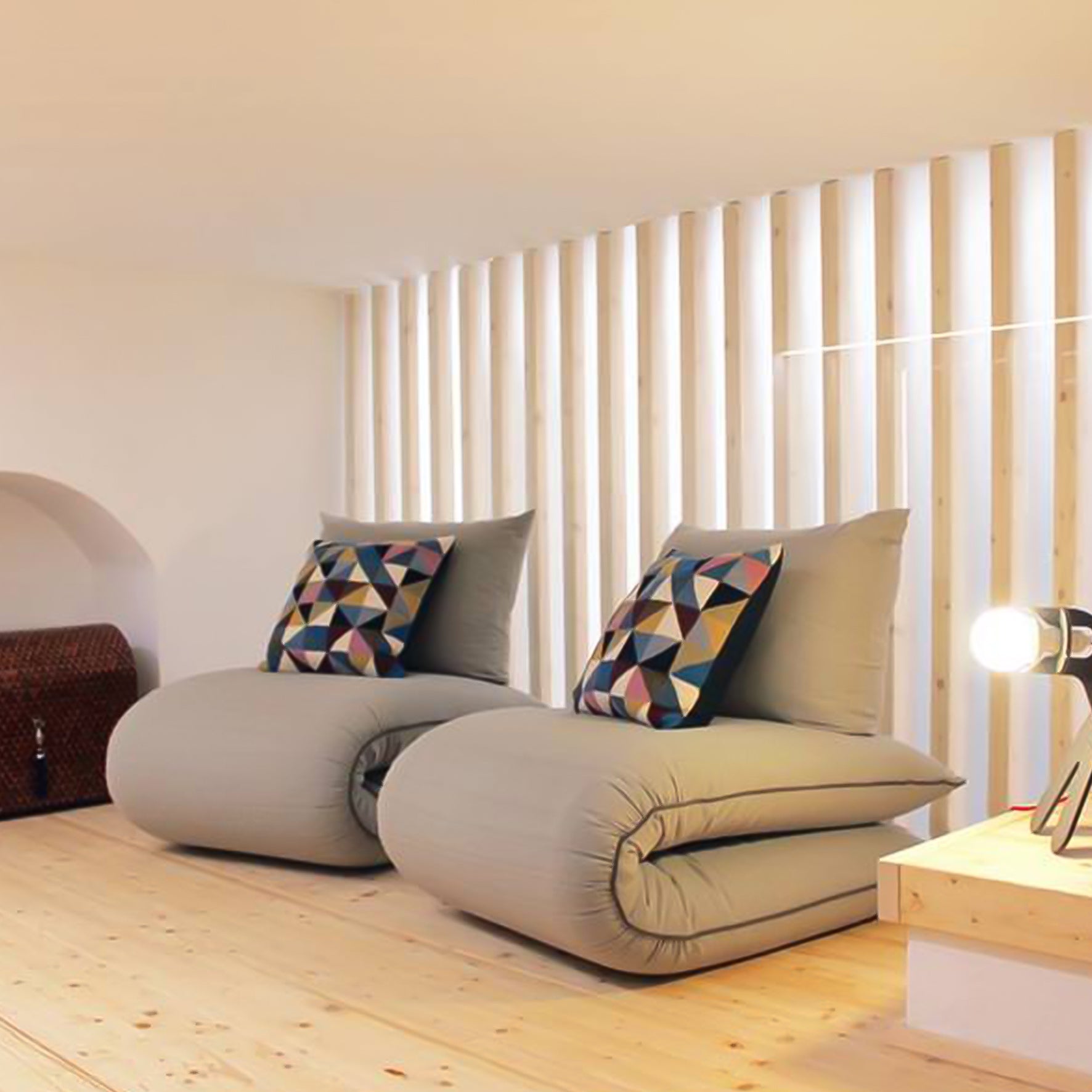 Kullanım şekline göre yatak katlanabilir ya da tamamen açılabilir; bu sayede Chama, bir tek kişilik yatak, çift kişilik yatak ya da yer üzerinde konforlu bir şezlong olarak kullanılabilir.