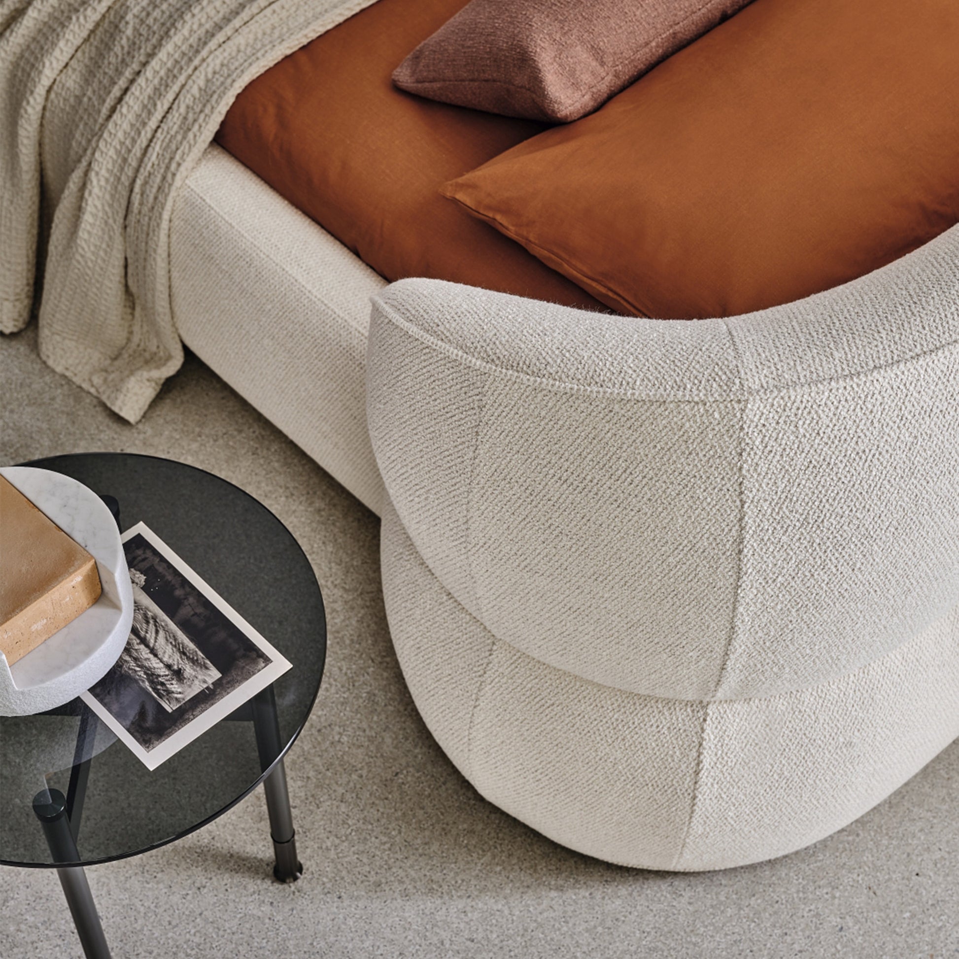 Yuvarlak ve dramatik. Bu nitelikler, özel bir yatak odası yaratır. Bu yatağın heykelsi etkisi, odanın ortasına yerleştirildiğinde en iyi şekilde hissedilir.