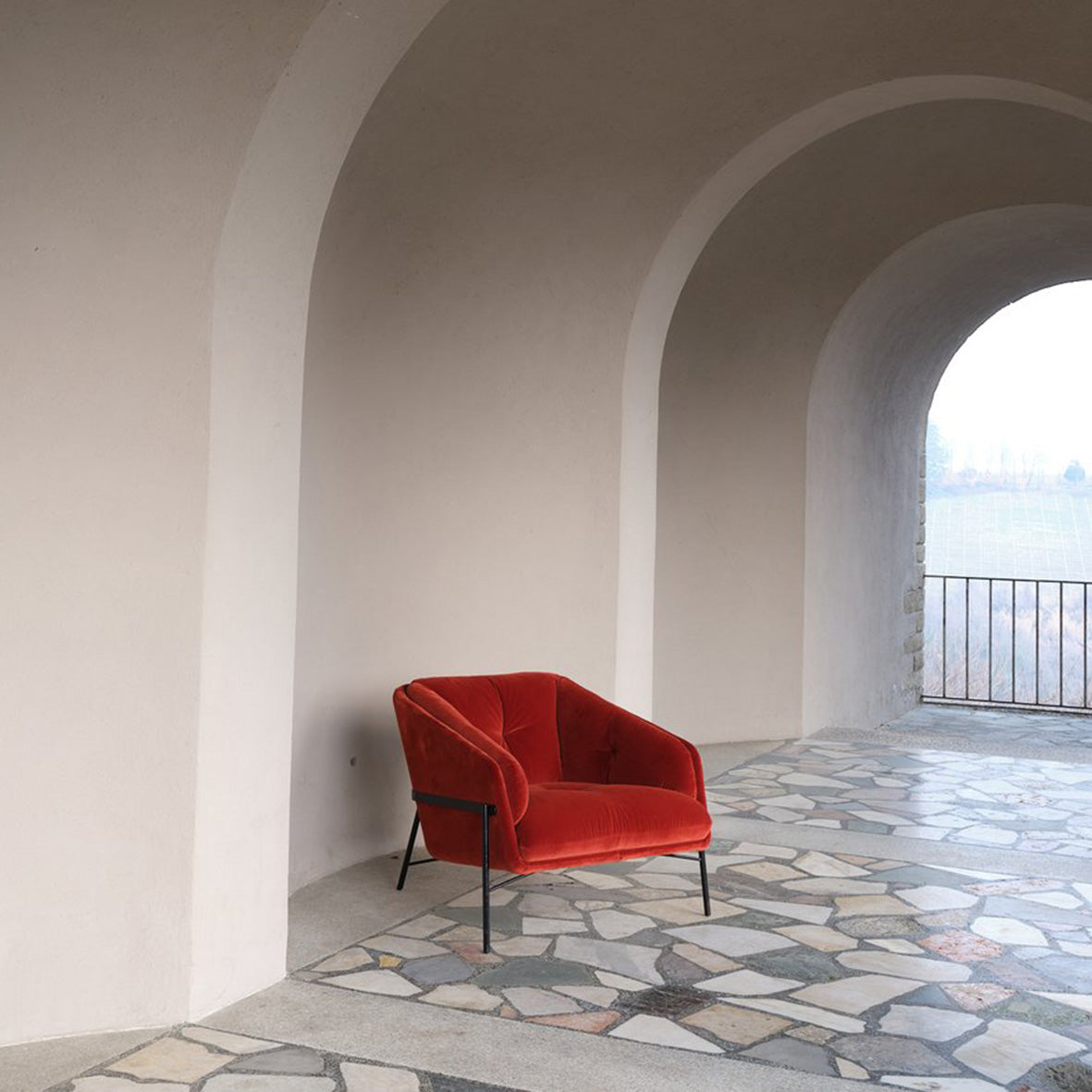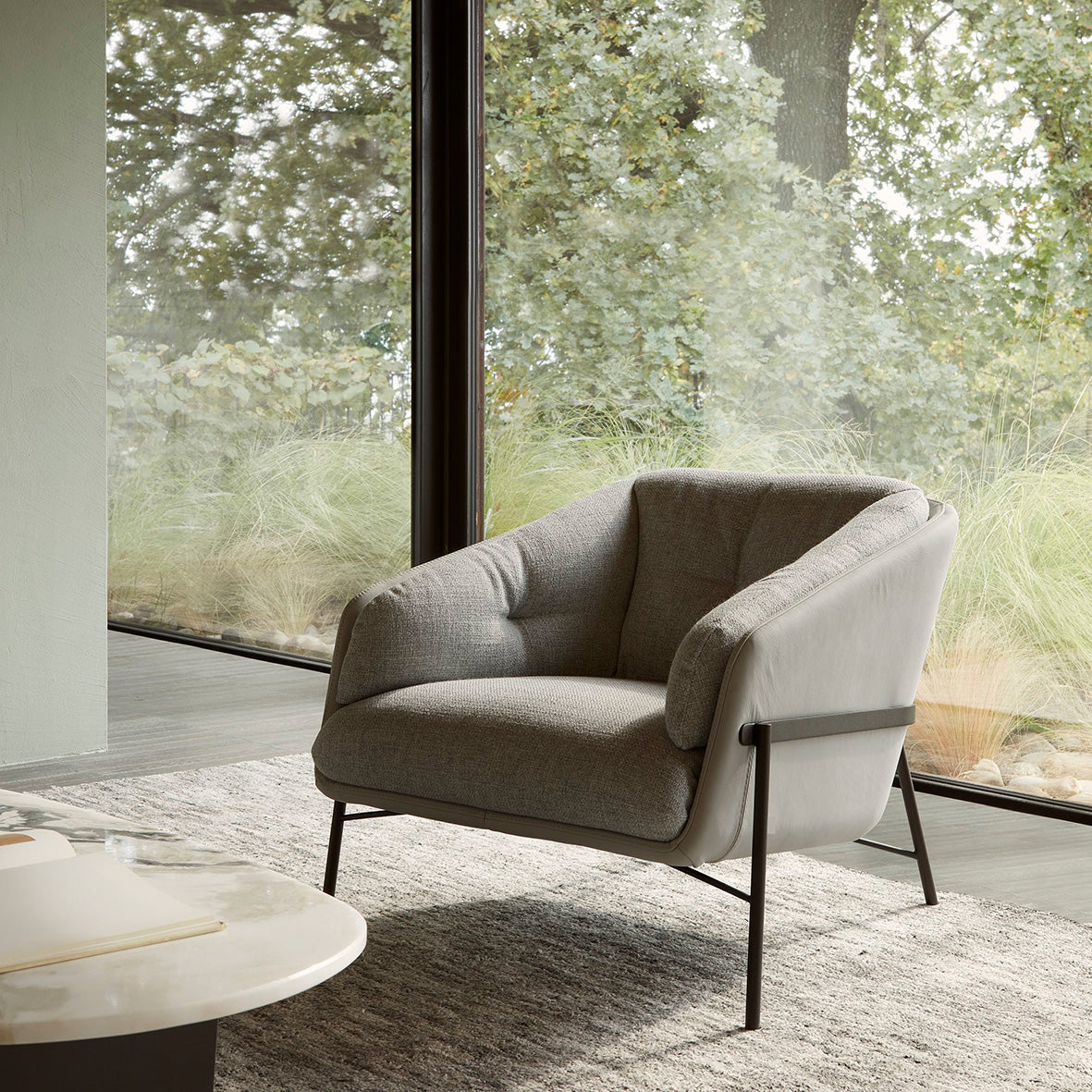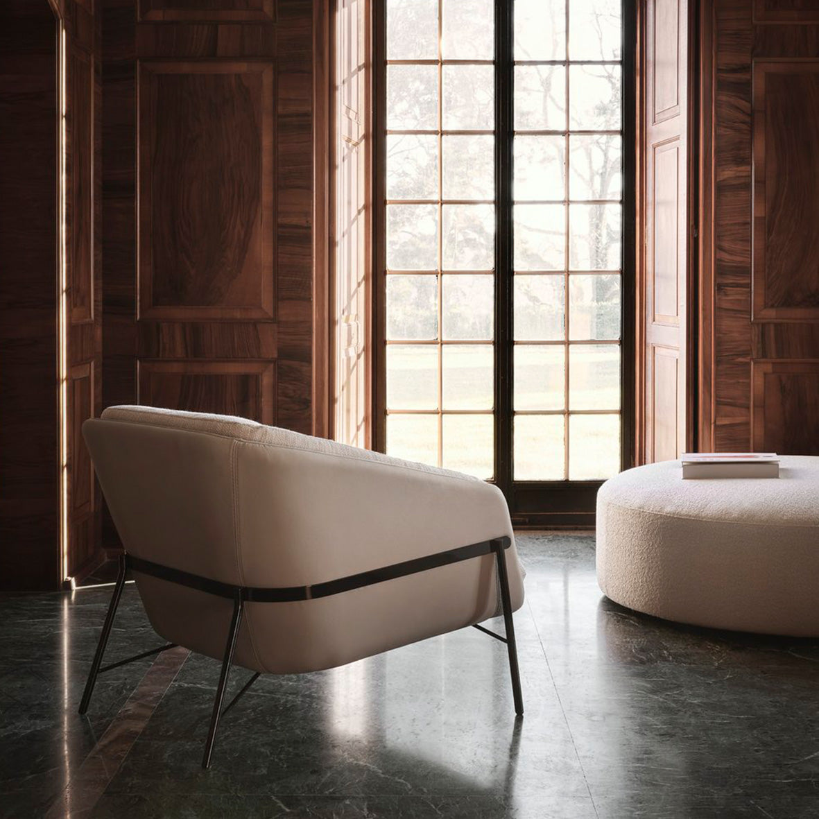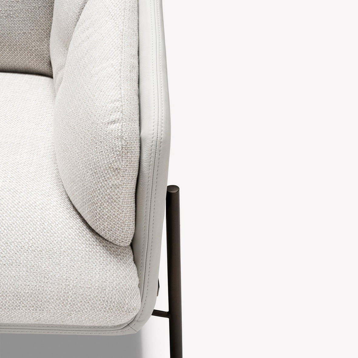 Tıpkı terzinin diktiği bir takım elbise gibi, şeklini alan kaplamasıyla bu sandalye yumuşak ve davetkâr bir görünüm sunar.