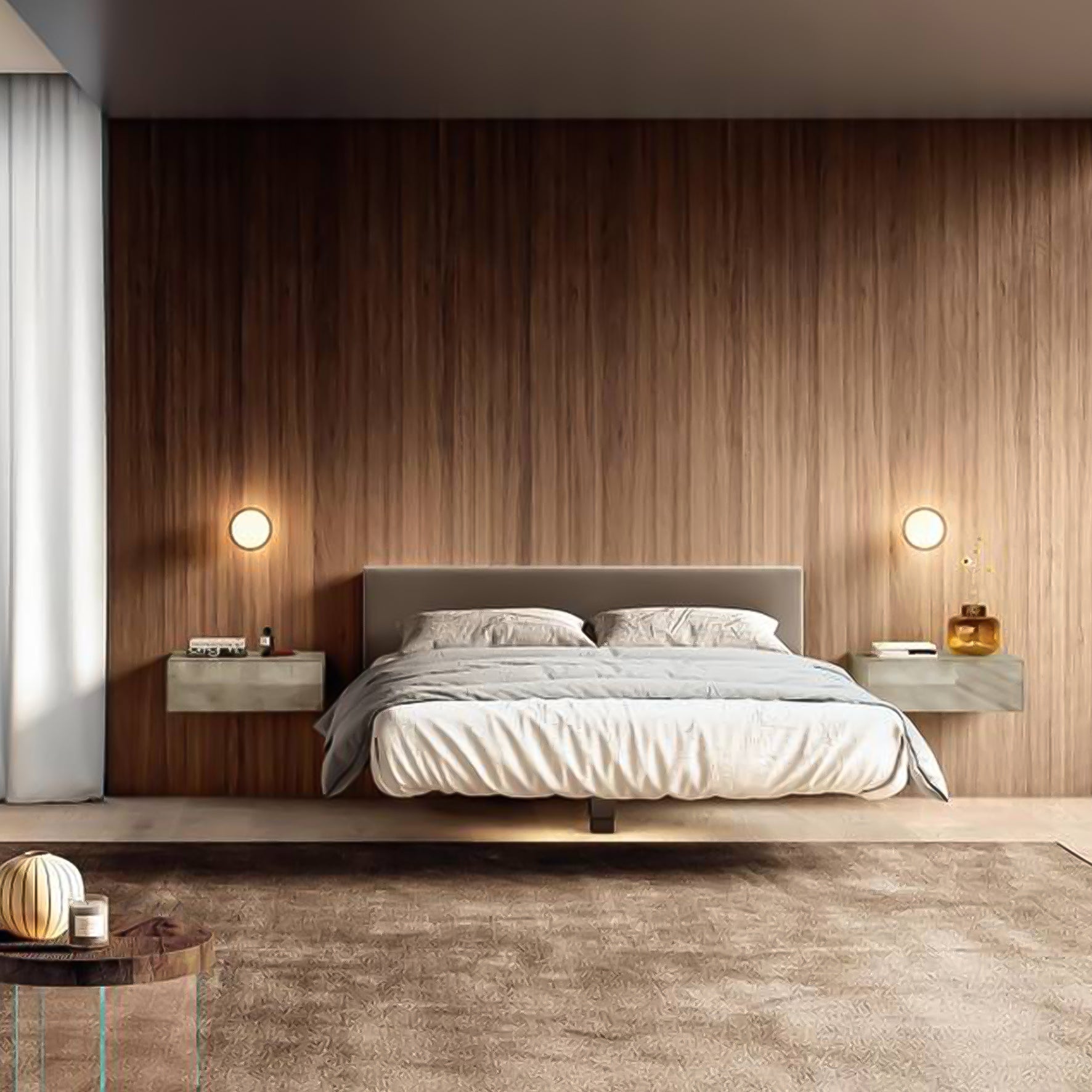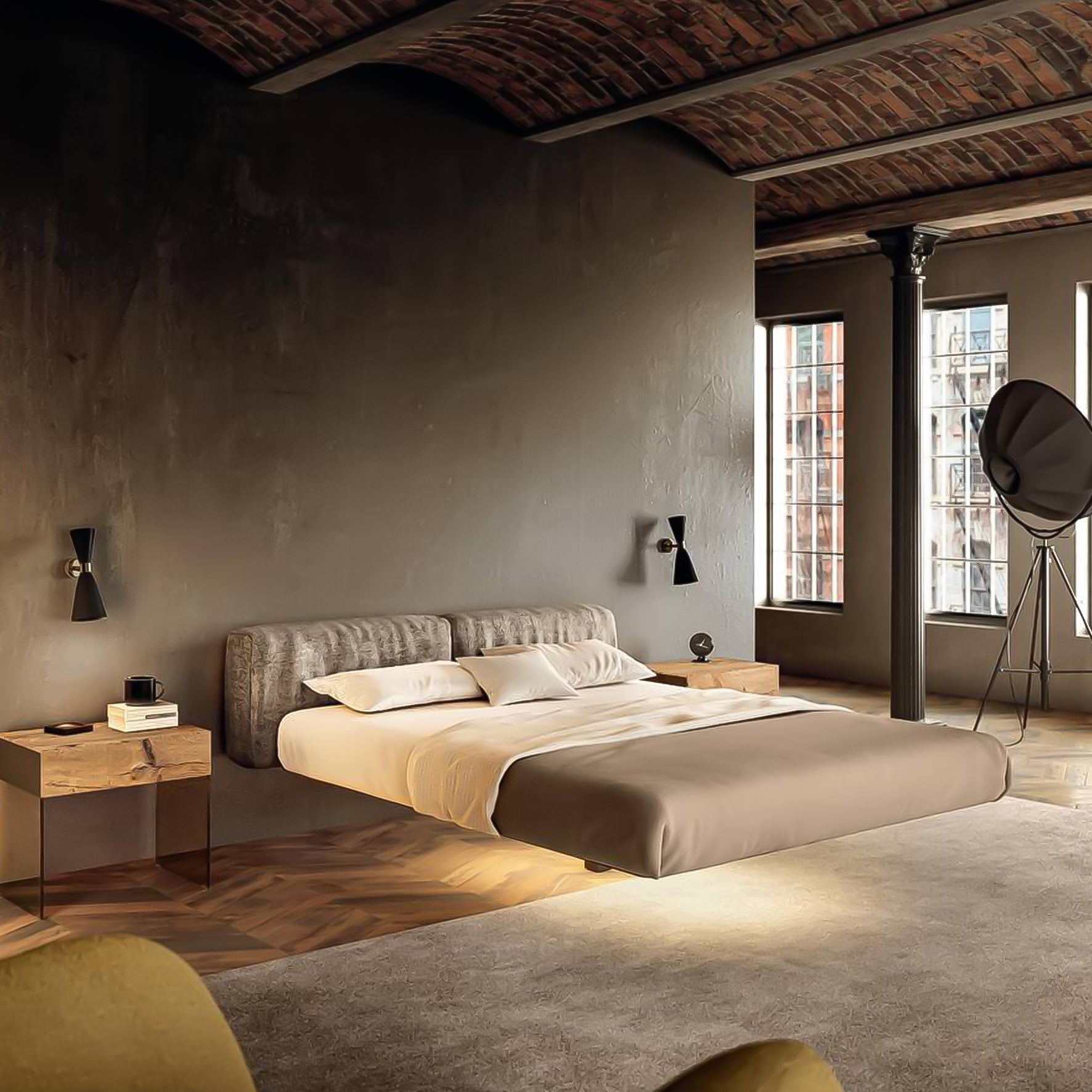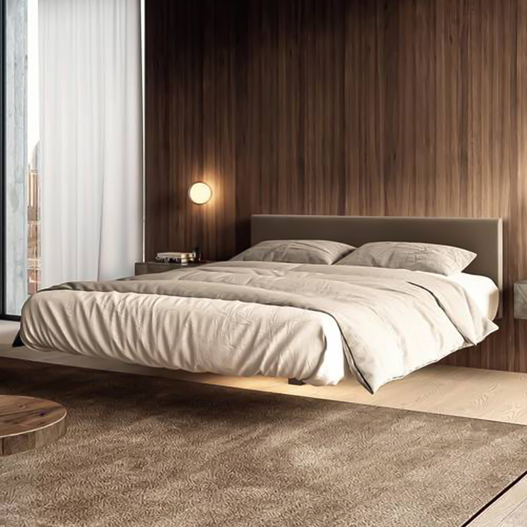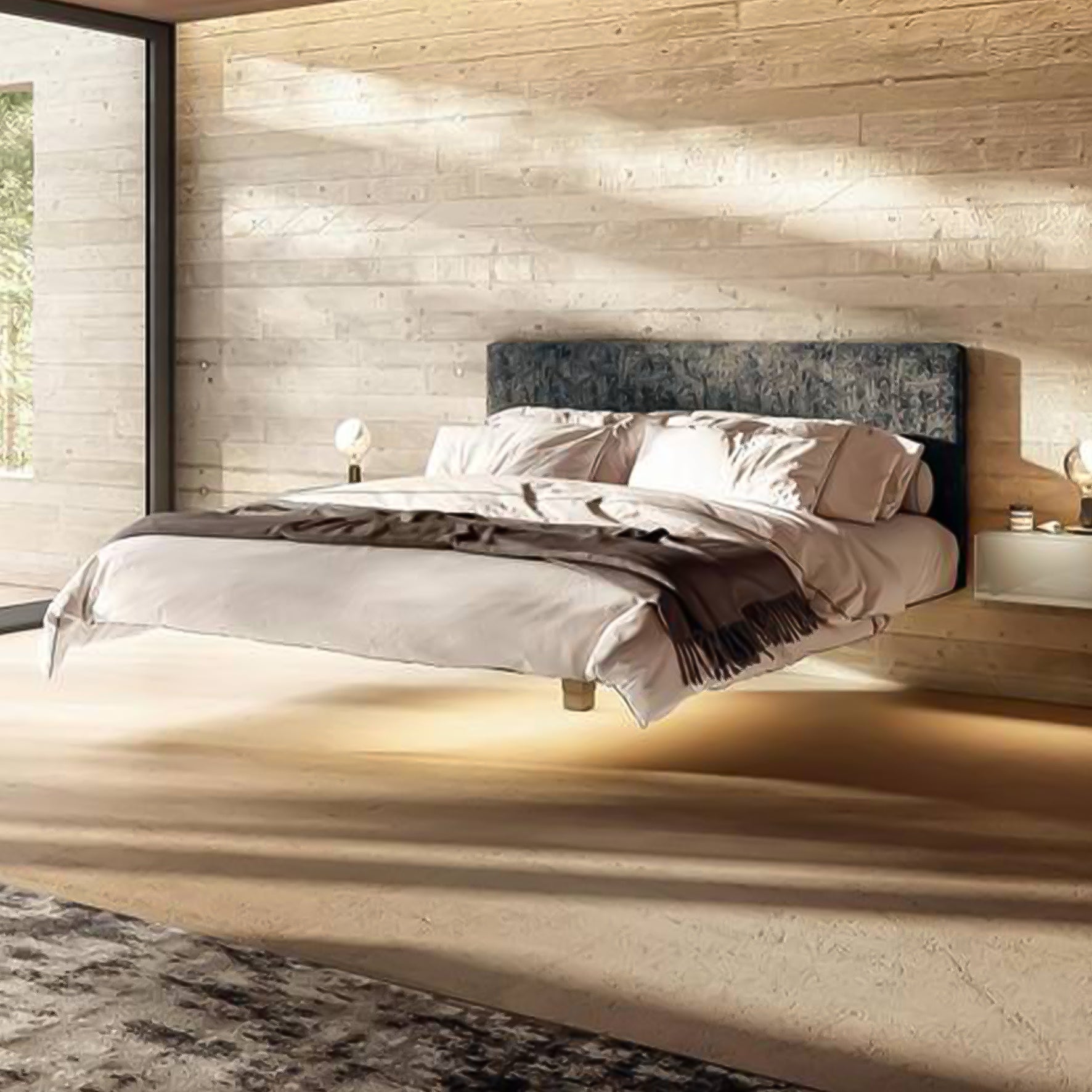 Fluttua, dünyanın yerden yükselen ilk yatağıdır; yerçekimine meydan okuyan yapısıyla size adeta havada süzülüyormuş gibi heyecan verici bir uyku deneyimi sunar. Yatak çerçevesi, duvara özel bir mekanizma ile sabitlenen, yükseklik ayarlanabilir tek bir merkezi ayak ile desteklenir. Yenilikçi HPL baza ise gözle fark edilemeyecek kadar ince olup, büyüleyici bir şekilde yatağın havada asılı durduğu izlenimini yaratır.