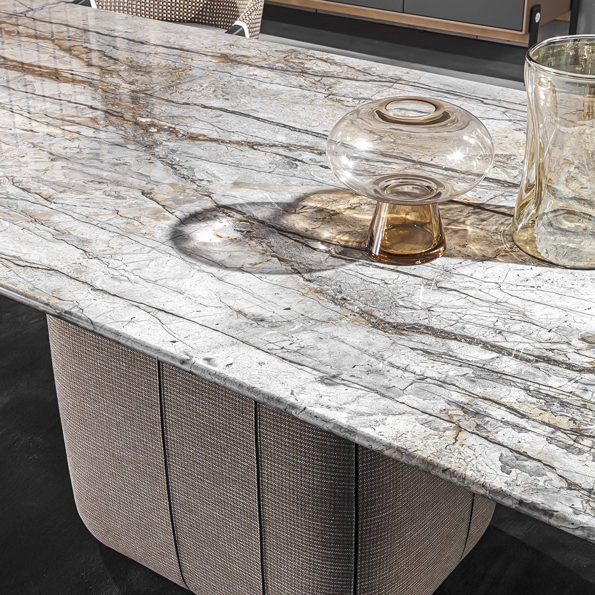 Meroni&Colzani masa koleksiyonunun yeni üyesi olan Grantorino, markanın felsefesini ve tarzını eksiksiz bir şekilde yansıtır. Deri veya kumaş kaplı, özel dikiş detaylarına sahip yastıklı ayak yapısı ve cam ya da mermer tabla seçeneğiyle, sonsuz kombinasyon imkânı sunar.