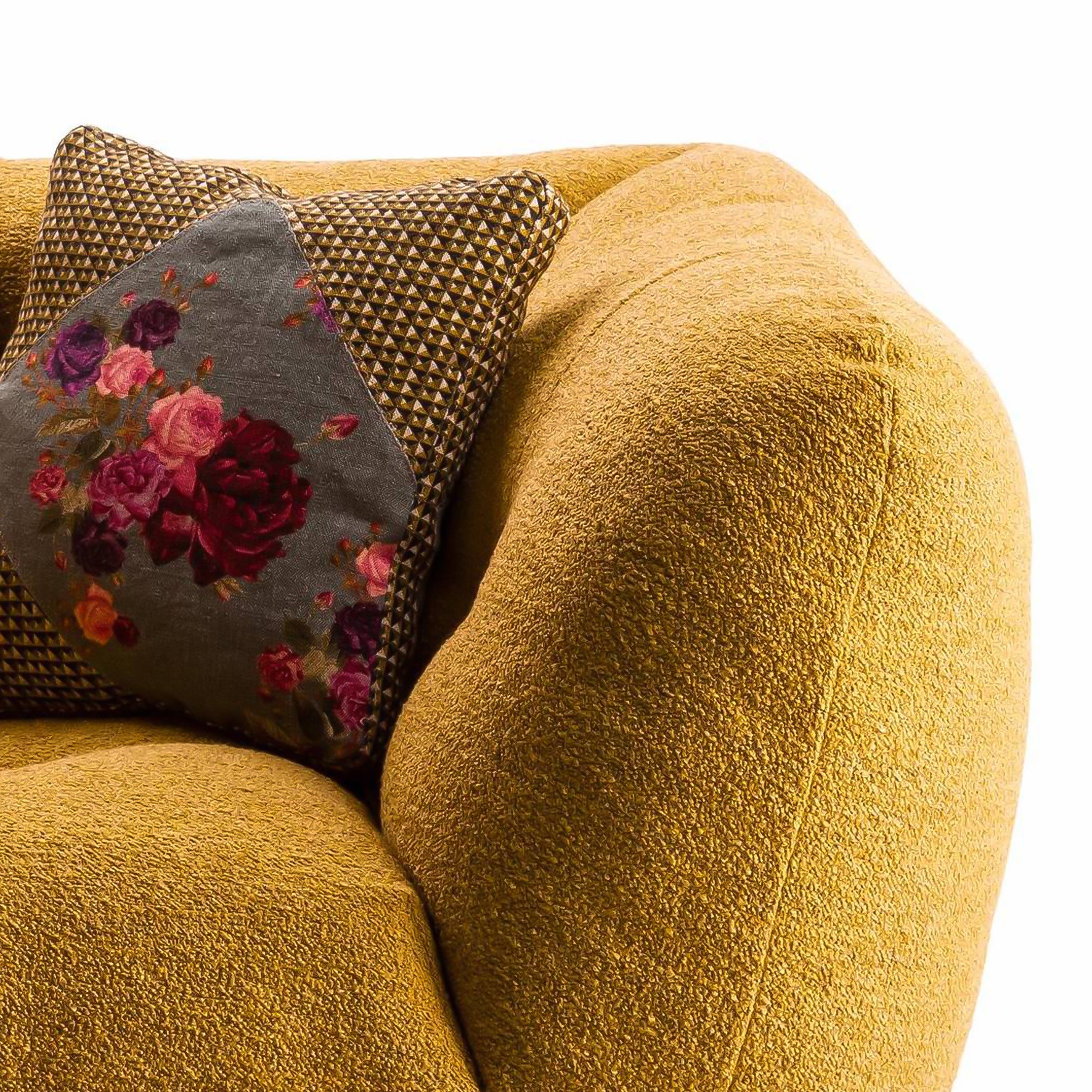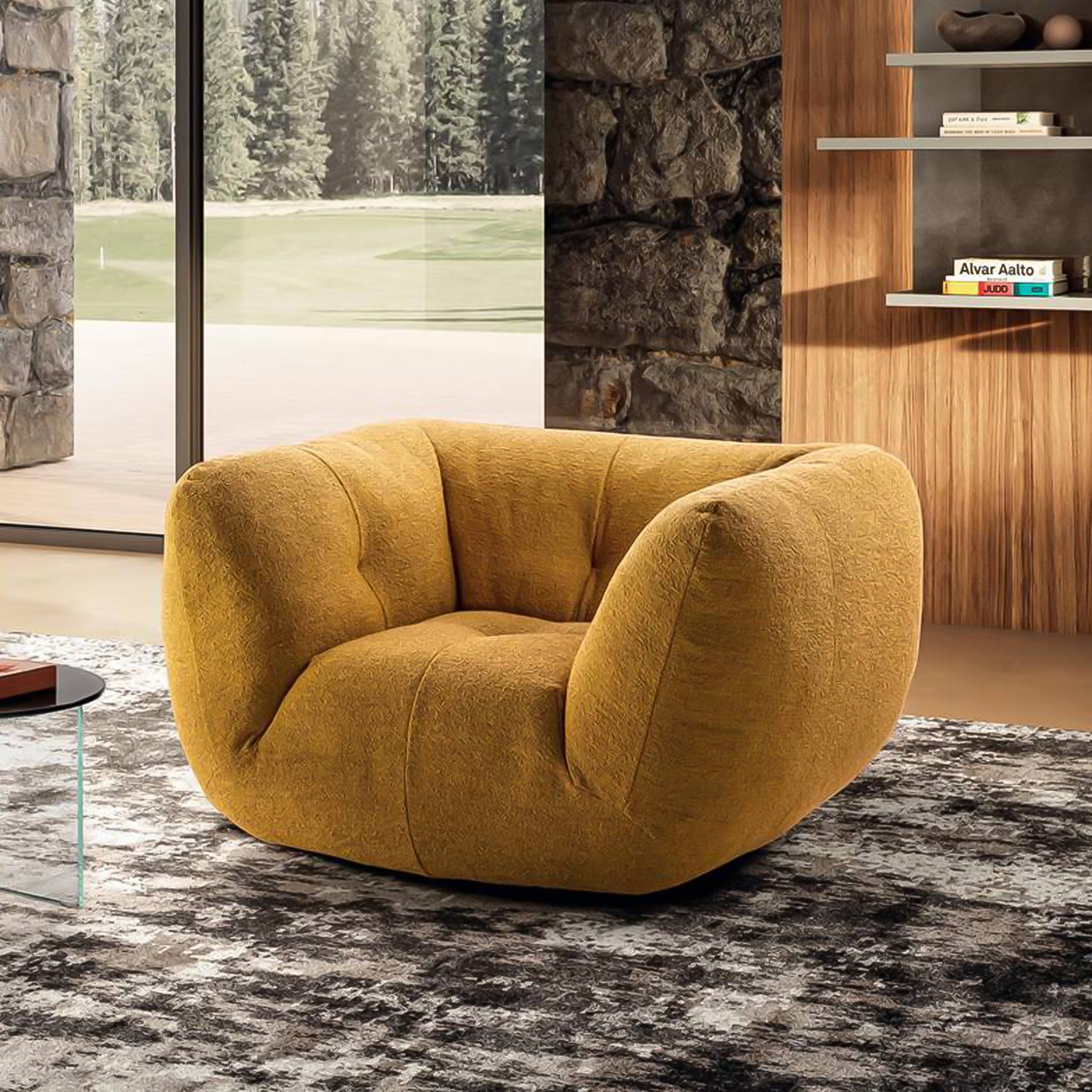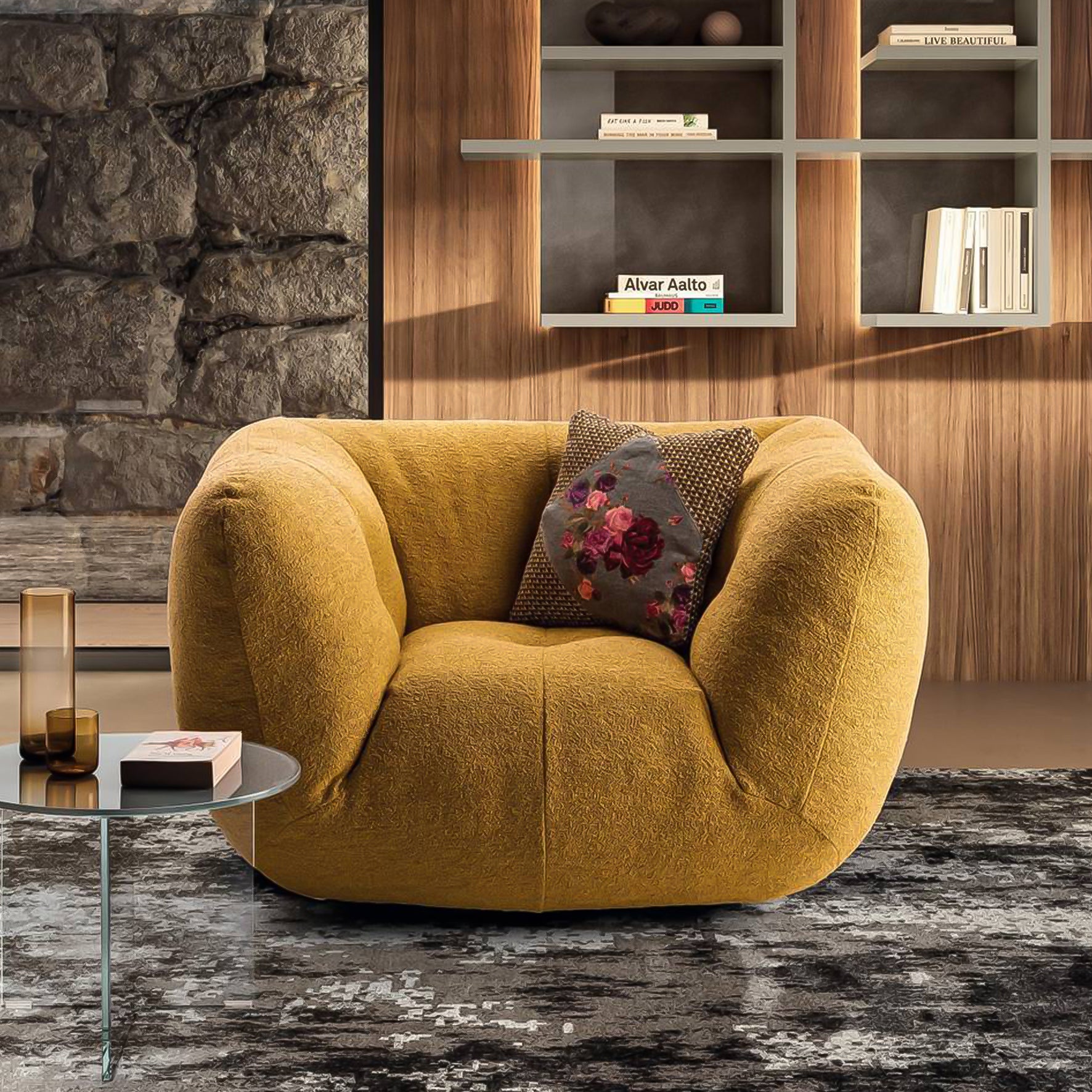 Cömert ve konforlu döşemesiyle, sert ve katı atmosferlerden uzaklaşarak kendini; kolçaklı ya da kolçaksız, zarif ve yere oturan formlarda ifade eder.