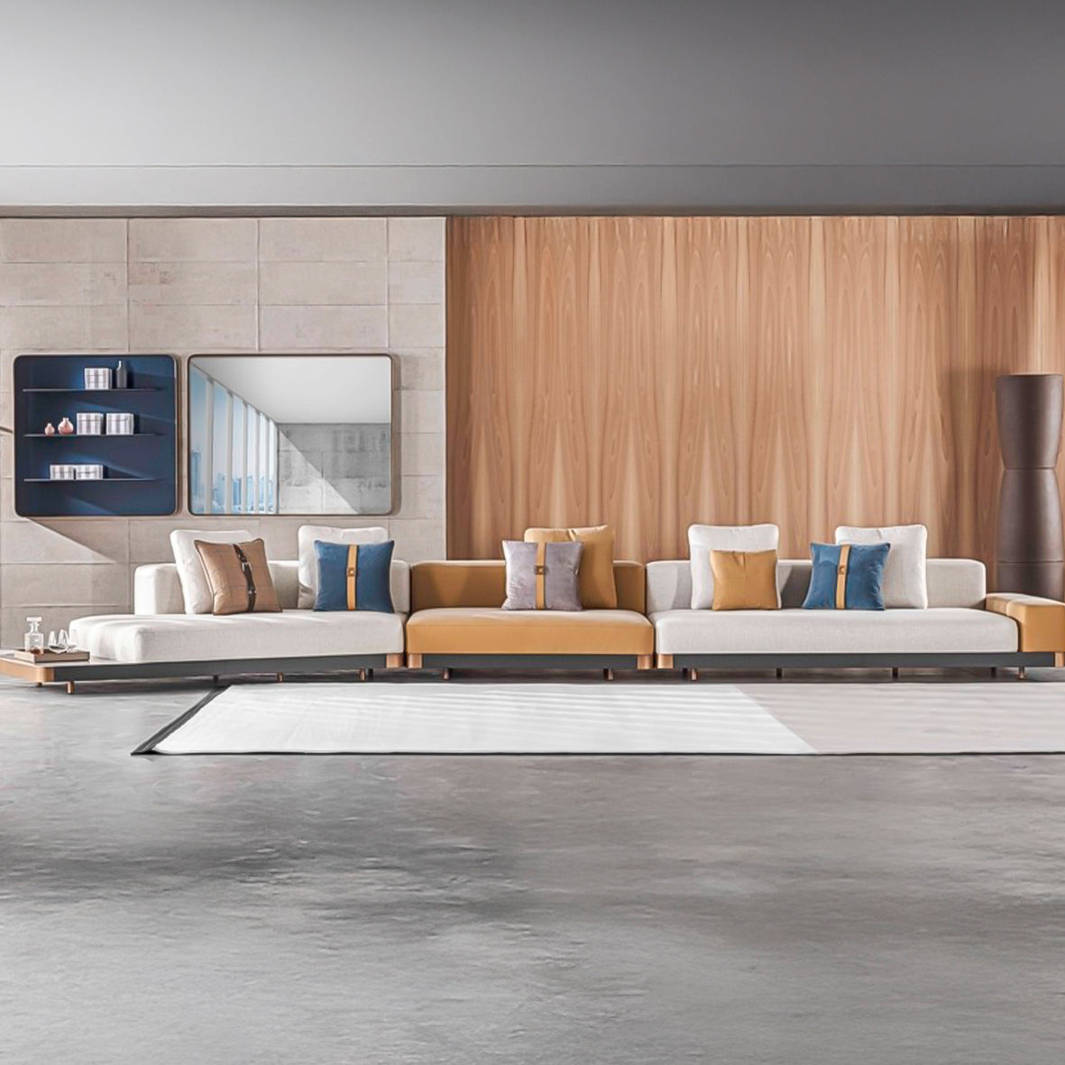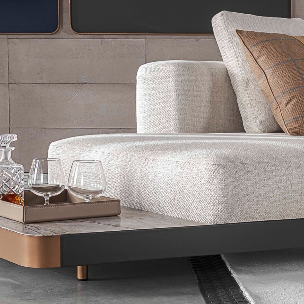 Entegre sehpa modülleriyle tamamlanan yüzey kaplamaları ve kombinasyon seçenekleri, geniş bir kişiselleştirme yelpazesi sunar.